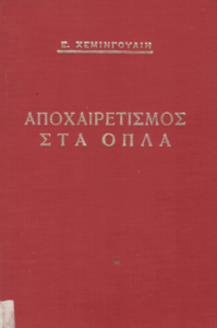 Το 1918 ο Έρνεστ Χέμινγουεϊ πήγε “στον πόλεμο που θα έβαζε τέλος σε όλους τους πολέμους”. Κατατάχθηκε ως εθελοντής τραυματιοφορέας στα ασθενοφόρα, τραυματίστηκε και παρασημοφορήθηκε. Από τις εμπειρίες του αυτές γεννήθηκε αυτό το μυθιστόρημα, που πολλοί θεωρούν ως το αριστούργημά του. Σ’ αυτό αναπλάθει με τρόπο απόλυτα πειστικό το φόβο, τη συντροφικότητα, το θάρρος του νεαρού Αμερικανού εθελοντή και των ανδρών και γυναικών που γνωρίζει στην Ιταλία. Όμως το “Αποχαιρετισμός στα όπλα” δεν είναι μονάχα ένα πολεμικό μυθιστόρημα.
