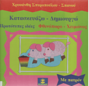 Αρχίζει η σχολική χρονιά μαζί και το φθινόπωρο και έρχεται ο τόμος αυτός να κάνει πιο εύκολη τη ζωή στο νηπιαγωγείο, στο δημοτικό σχολείο και στο σπίτι, με πρωτότυπα σχέδια που μπορεί να φτιάξει κανείς καθημερινά. Τα υλικά είναι απλά και βρίσκονται γύρω μας. Φύλλα φυσικά ή τεχνητά, ζωάκια και καρποί, χόρτα, λουλούδια, πουλιά που φεύγουν, χιονάνθρωποι, χιονισμένα τοπία, χειμωνιάτικα στολίδια, οι ημέρες της εβδομάδας, οι αριθμοί και τα γράμματα καθώς και ήρωες από τη μυθολογία είναι μερικά από τα θέματα αυτού του βιβλίου.